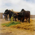 از چند نفر نام مرد خرمن کوب را می پرسم او را نمی شناسند تا اینکه یکی از دوستانمم جناب آقای یعقوبی می گوید بیلندی نیست به مرکز دایره خرمن می روم و از او نامش را می پرسم “حسن جمعگی از بیدخت هستم ” از او می پرسم گاو ها بسیار آزموده و کار بلد هستند معلوم می شود تمرین کرده هستند مگر با وجود دنیای تکنولوژی آیا هنوز از این روش برای خرمن کوفتن استفاده می شود که گفت: بله من با این گاوها و با همین شکل خرمن ارزن را می کوبم.
